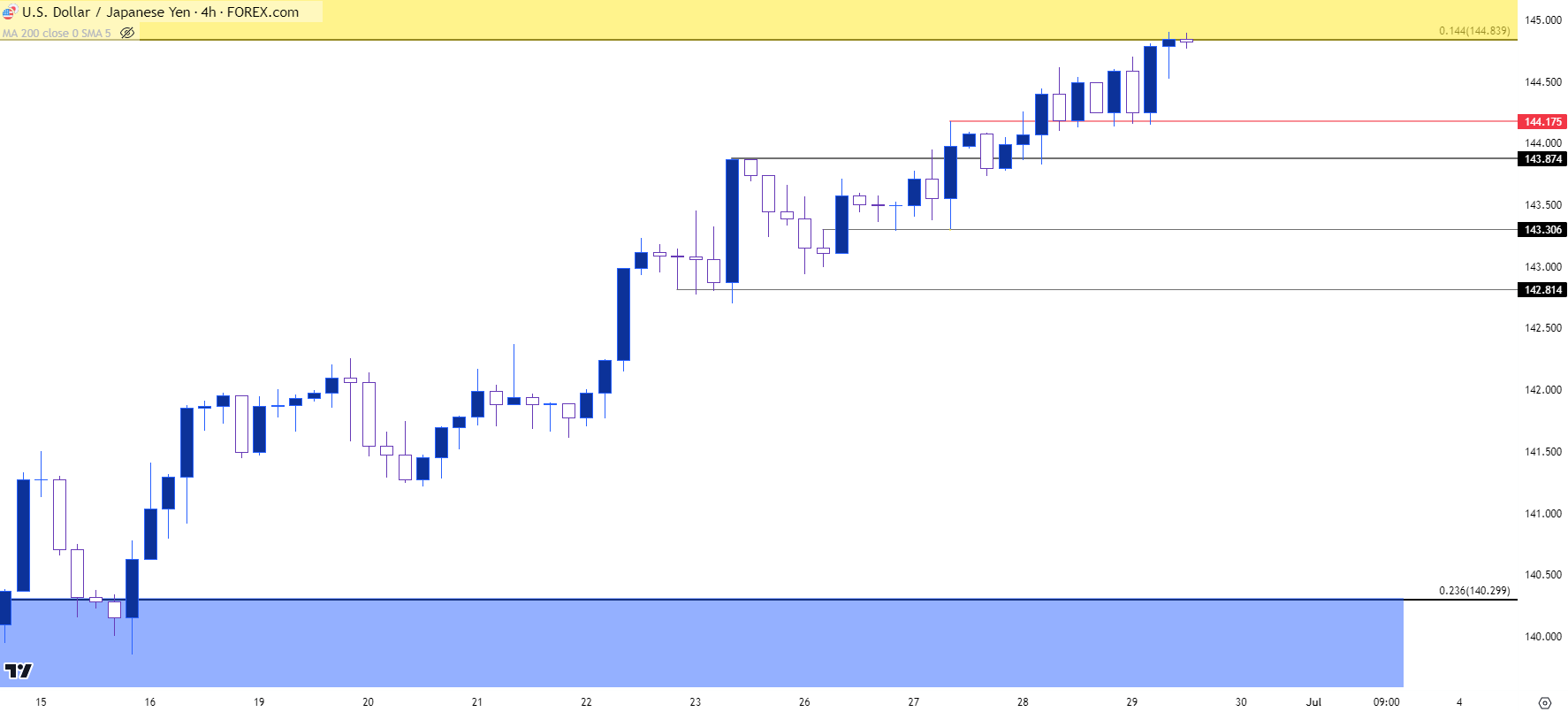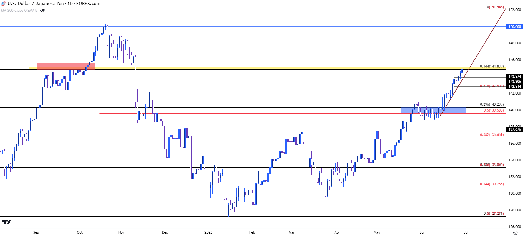 图表由James Stanley绘制,TradingView上的美元/日元